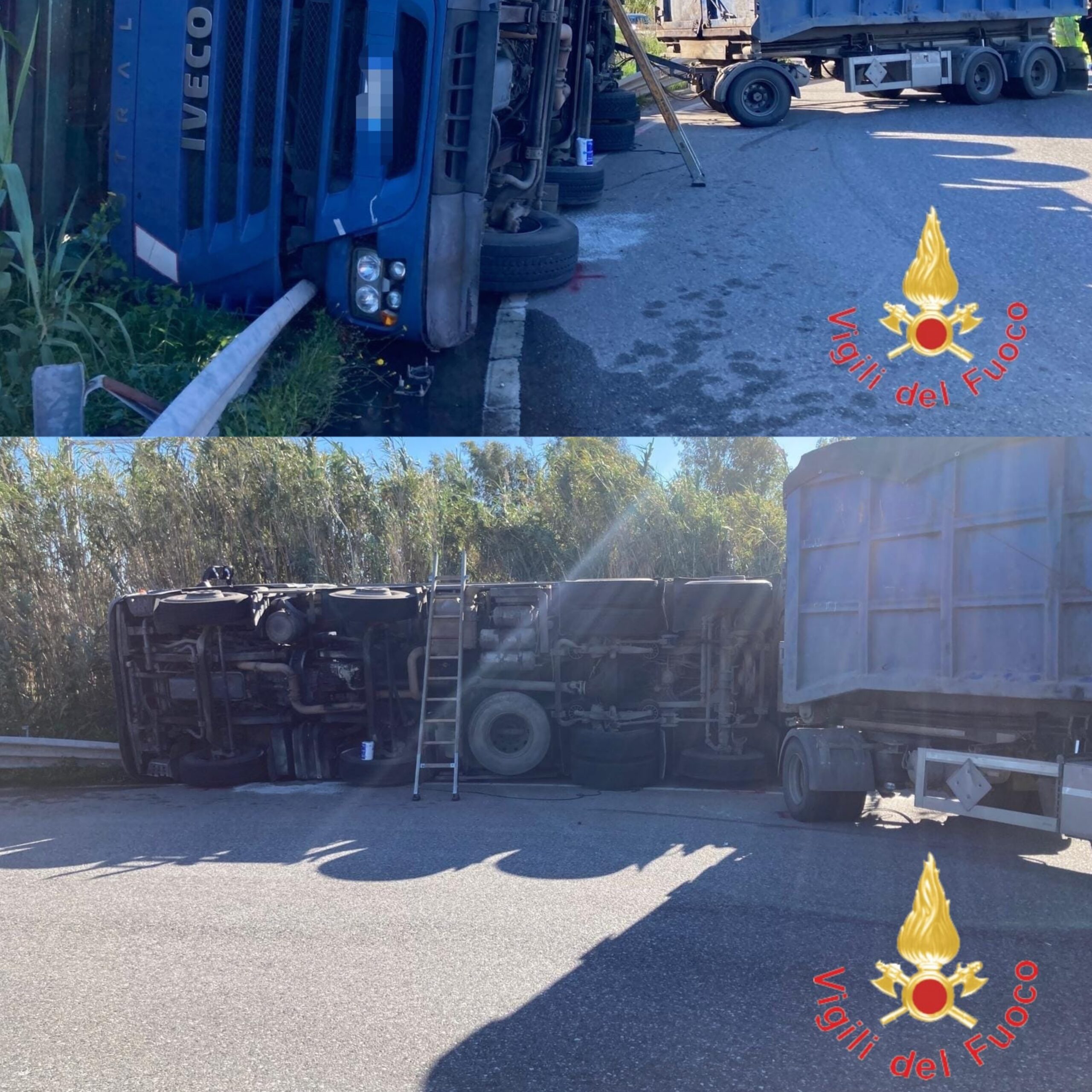 Il sinistro ha coinvolto un autotreno (motrice con rimorchio). Per cause in corso di accertamento, la motrice si è ribaltata su un fianco occupando parte della sede stradale.